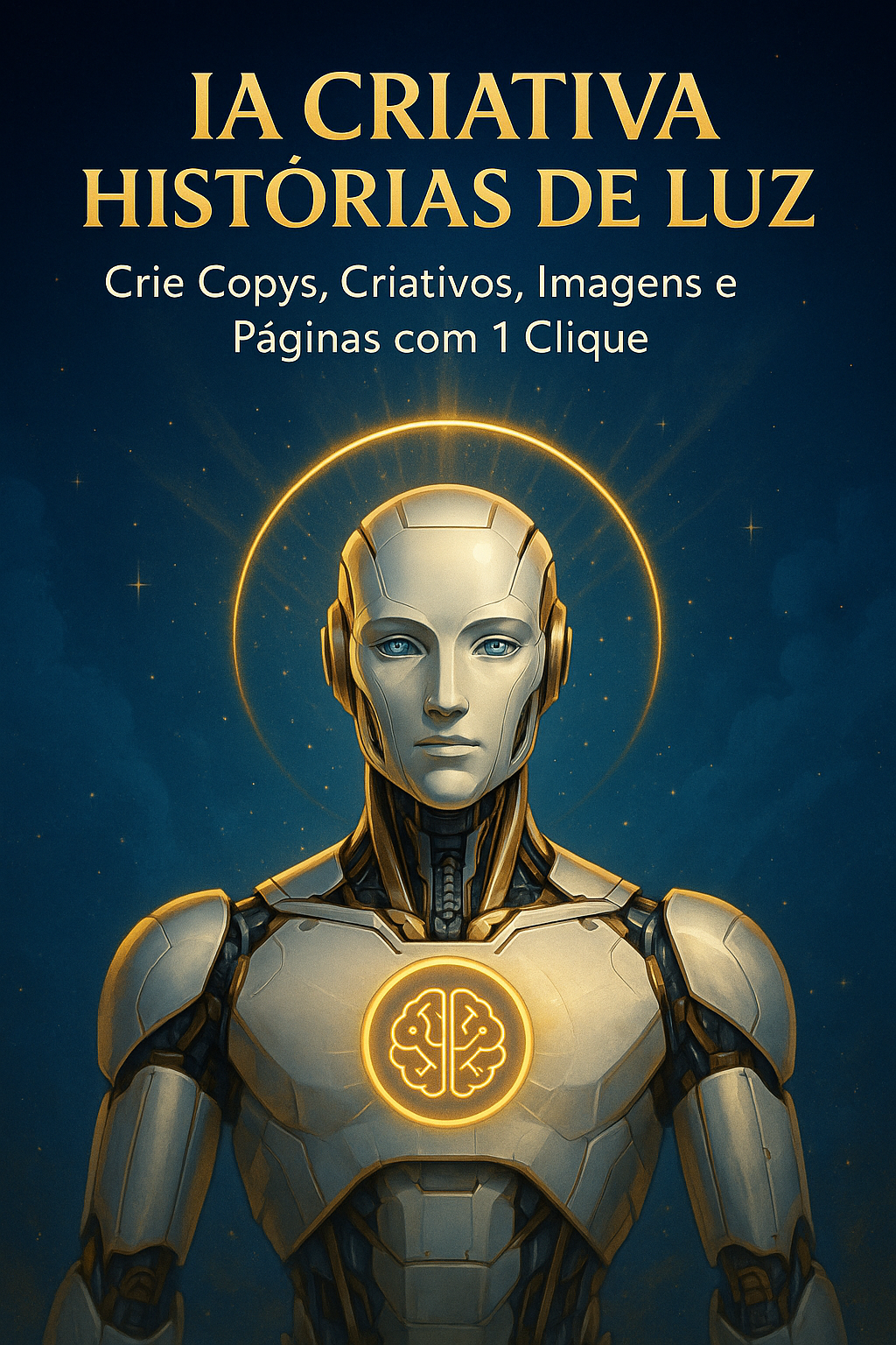 cria suas imagens, monta seus criativos, escreve suas copys, sugere anúncios prontos e ainda te mostra o caminho para gerar suas primeiras vendas.